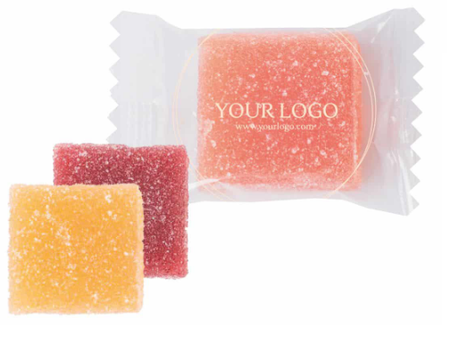 An individually wrapped jelly which is suitable for vegans.